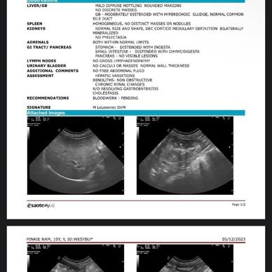 I apologize in advance for the long post. My dog is 10.5 years old and she has had pancreatitis flare ups in the past. I brought her in because she wasn’t eating unless it was from my hand, vomited bile, and just seemed a bit more lethargic in general. They were able to run bloodwork and an ultrasound and I have posted the results below. We sadly live in an area where there are practically no holistic vets within an hour of us, other than house call acupuncture vets. Her traditional vet stated that Pinkie had stones in her kidneys but not in her bladder and that it is not a concern, which I have since learned otherwise. She also diagnosed Pinkie with kidney disease with only the ultrasound before the bloodwork even came back. She does not have symptoms of kidney issues- no excess drinking, no excess urinating, etc. which is why it was a complete shock when her vet mentioned kidney disease. She did not give me a protocol to follow but after doing some research, I’m wondering if you approve of what I came up with- I read about lysimachia-3, Dang Gui and Peony Support Formula, milk thistle, calcium citrate, rhemannia-8 and I’m wondering which ones you think are appropriate in this case. She will be on a real food diet, although I’m having trouble finding the right one. I’m looking at one that has a phosphorous content of 0.43 DMB- is that okay? I am also planning on geting her acupuncture as I have read the various benefits of it. I read a lot of previous posts from this group and I’m also wondering if the calcium oxalate stones can be dissolved and if kidney disease can be reversed as I know traditional vets believe neither is possible. But I read about Leslie Bean’s success with her dogs and their calcium oxalate stones. Her blood work shows an increase in BUN and BUN/creatinine ratio but with normal creatinine levels. Her SDMA levels are also in normal range and I’m wondering if her ultrasound and blood work are indicative of kidney disease like her vet stated. Thank you for everything!