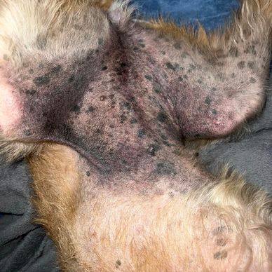 Note that if Apoquel and Cytopoint (two immune suppressants) didn't help, then it raises the chances that a local immune stimulant like Galvanex will. Often inflammation due to immune deficiency seems to affect the belly, groin and axillae (armpits).