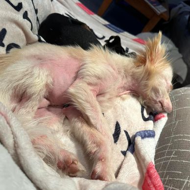 Dr. Steve's Advice - good for you for giving that little dog a home! I'm so glad that Cessorex (https://goldstandardherbs.com/products/Original-Cessorex-85g-p647327434), real food, and Gussys Gut has made such a difference in your dog's skin! To help relieve intense itch and inflammation while maybe drying some of that Dampness, you can add in Cool the Blood from Kan Essentials which you can source through Aleksandra Topic by following her instructions here: https://www.facebook.com/groups/1158575954706282/posts/1420037418560133/ or 'ImmunoBalm' from Gold Standard Herbs (no Rx necessary).,